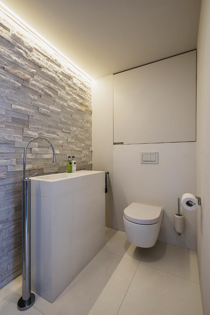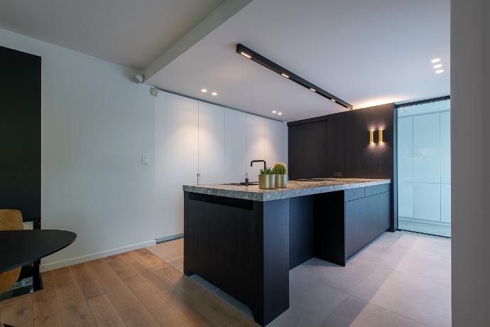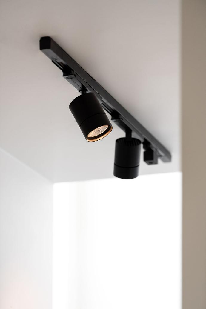 Dit trendy koppel koos doorheen het volledig interieurontwerp voor een moderne omgeving met warme accenten. Om het marmer keukenblad te verlichten kiezen we voor een LINIA 5470 Argus met een brede lichtuitstraling. De 48°-lichtbundel zorgt ervoor dat er geen schaduwvlekken aanwezig zijn op de gestileerde natuursteen. Het zwarte armatuur zorgt voor een mooi contrast met de witte muren/plafonds, waardoor het totaalplaatje volledig in de stijl van de bewoners is.