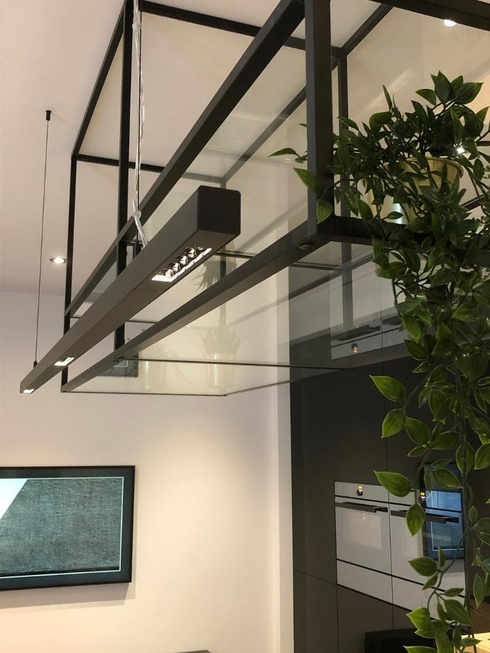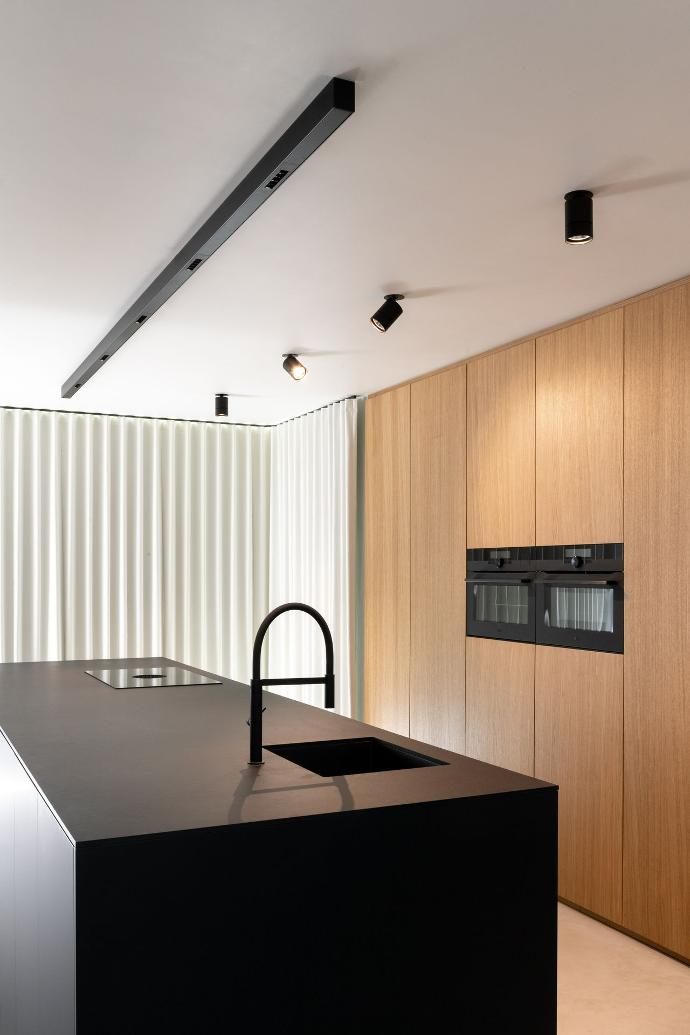 Ieder keukeneiland is uniek door hun verschillende vormen, afmetingen en de hoogtes van het plafond. Er werd geopteerd voor de LINIA 5470 Oculi. Deze lijnverlichting wordt vaak gebruikt in keukens om zijn strakke uiterlijk en personaliseerbare lichtuitstraling.