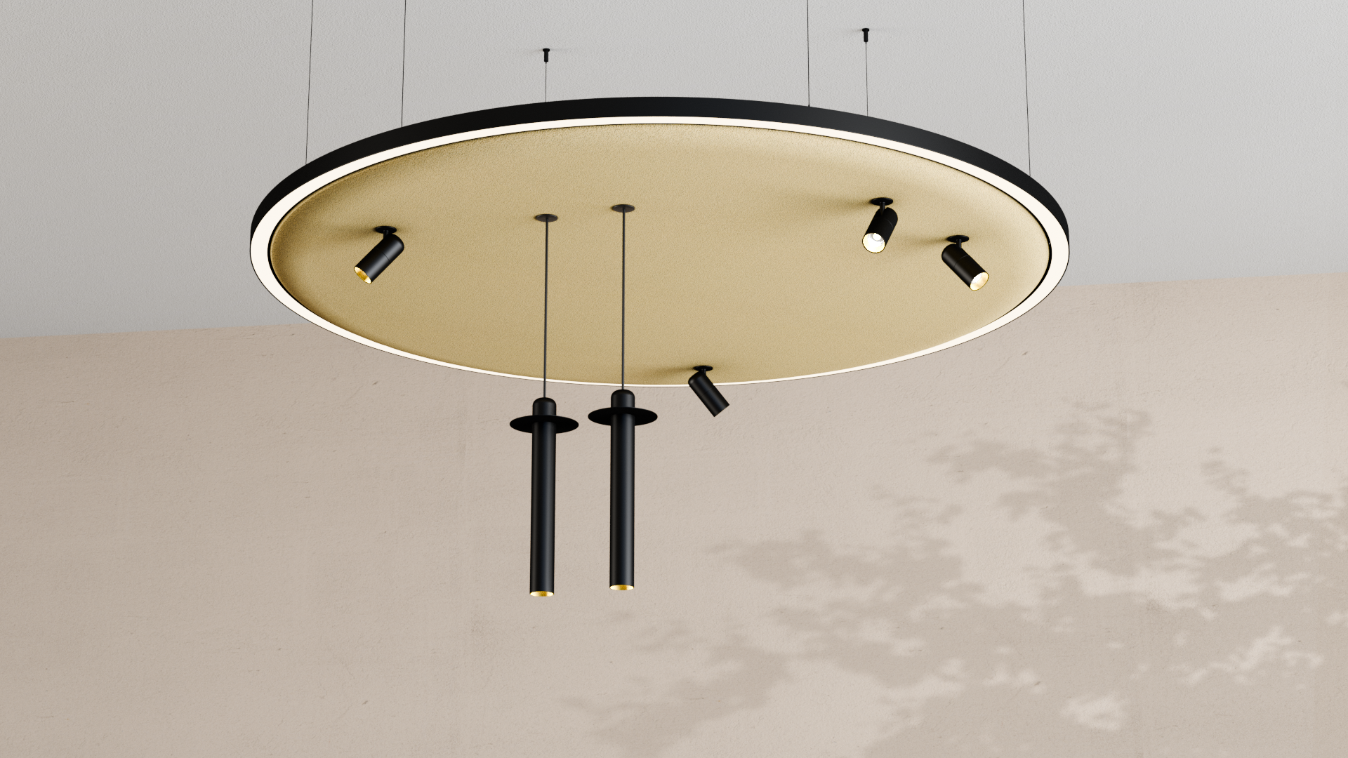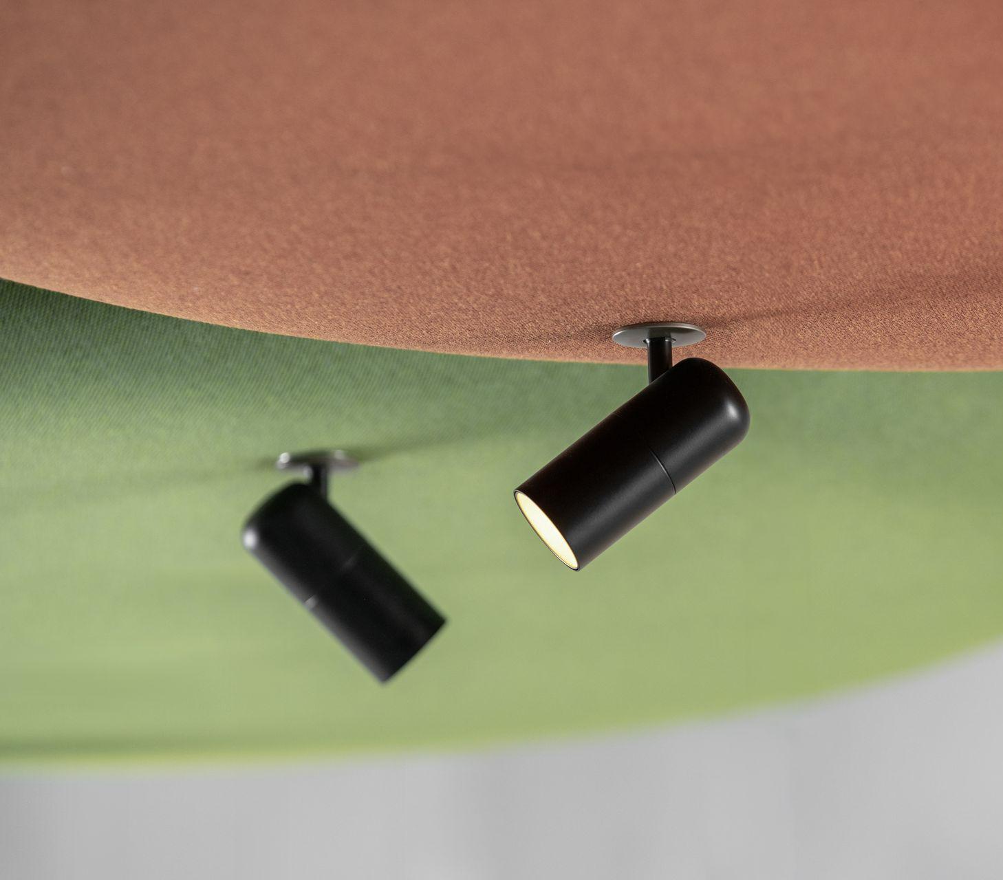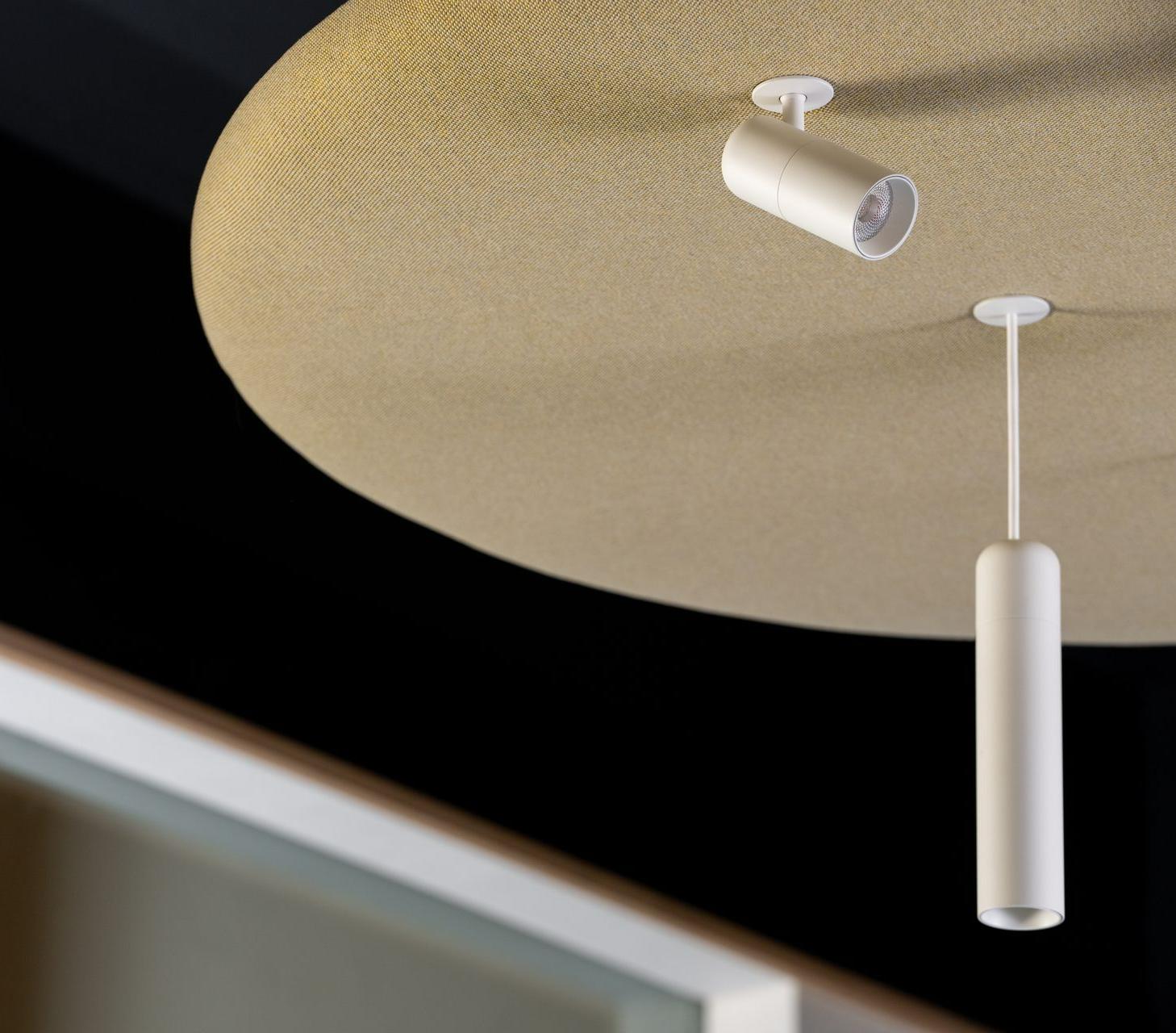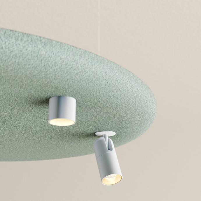 Het Muto-hart bestaat uit een akoestisch paneel met ecologische, brandwerende stoffen voor een verfijnde esthetiek en goede geluidsabsorptie. Wat dit product uniek maakt, is de mogelijkheid om tot 10 add-ons naar wens te positioneren. In plaats van de traditionele montage aan de rand van het paneel, kunnen deze add-ons in cirkelvormige opstellingen rond het paneel of als richtbare en gependelde spots direct op het paneel worden gemonteerd, wat zorgt voor eindeloze mogelijkheden.
