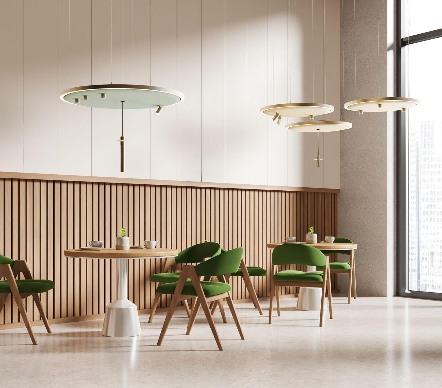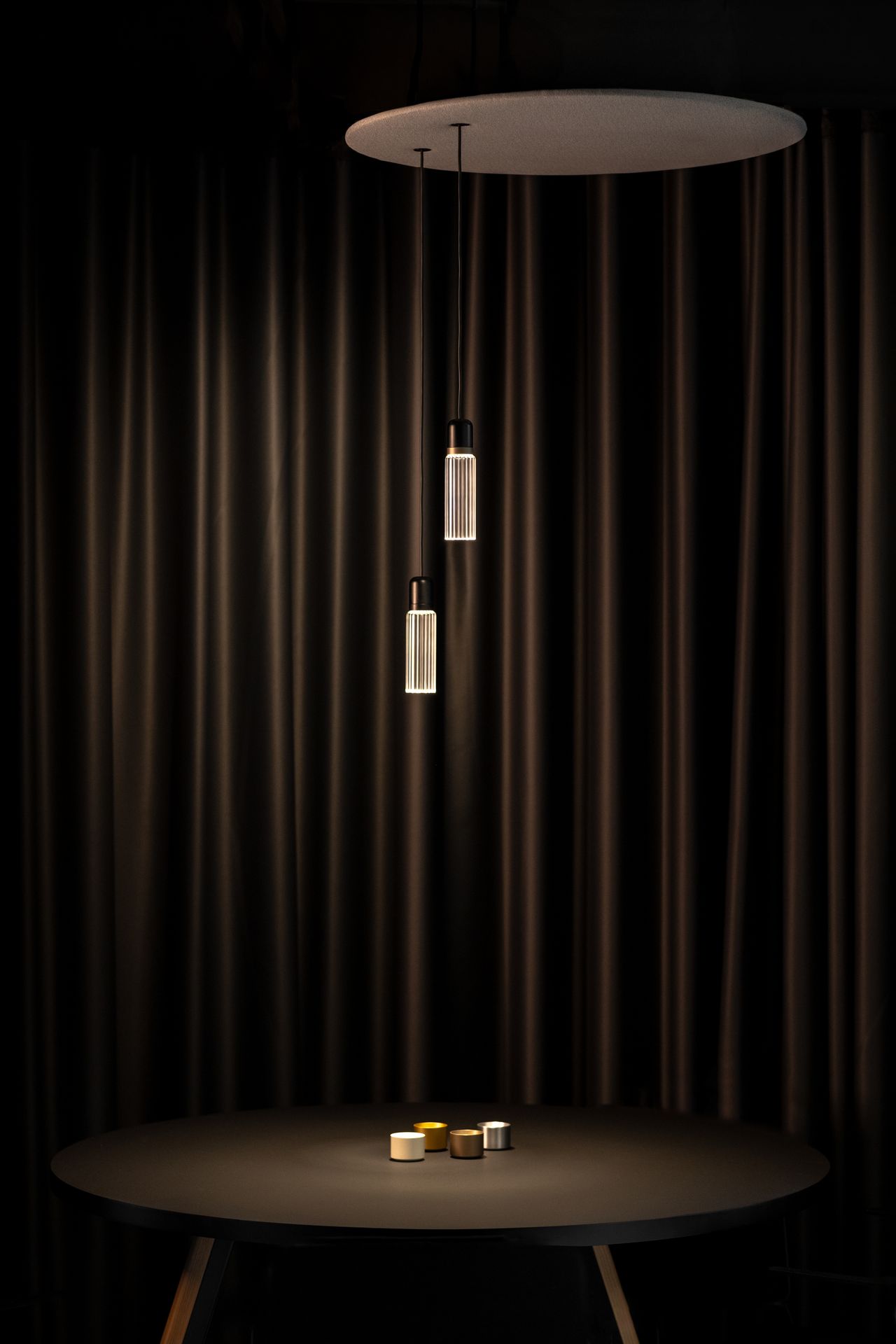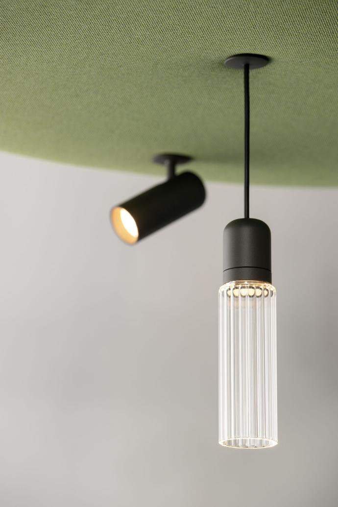 Het Muto-hart bestaat uit een akoestisch paneel met ecologische, brandwerende stoffen voor een verfijnde esthetiek en goede geluidsabsorptie. Wat dit product uniek maakt, is de mogelijkheid om tot 10 add-ons naar wens te positioneren. In plaats van de traditionele montage aan de rand van het paneel, kunnen deze add-ons in cirkelvormige opstellingen rond het paneel of als richtbare en gependelde spots direct op het paneel worden gemonteerd, wat zorgt voor eindeloze mogelijkheden.